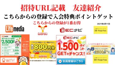 ライフメディアECナビ ワラウ ライフメディア ハピタス 友達紹介 ポイ活 副業 life media warau hapitasポイントサイト アプリ 在宅ワーク 学生 主婦 2021年6月11日