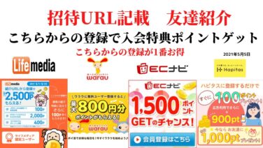 ライフメディアECナビ ワラウ ライフメディア ハピタス 友達紹介 ポイ活 副業 life media warau hapitasポイントサイト アプリ 在宅ワーク 学生 主婦 2021年5月5日