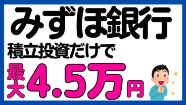 【みずほ銀行】積立投信で4万5千円がもらえるキャンペーン