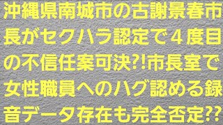 沖縄県南城市の古謝景春市長がセクハラ認定で4度目の不信任案可決??市長室で女性職員へのハグ認める録音データ存在も完全否定??