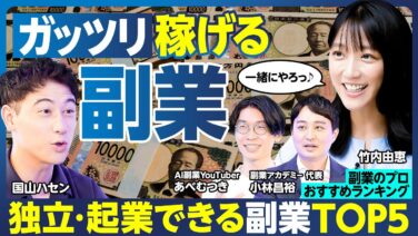 稼げる副業TOP5/億万長者への最適ルート/キャリアを切り開く/独立・起業/AIを活用して起業/まだまだ稼げる王道の副業/竹内由恵 挑戦する副業決定/ハセンの本気/副業の注意【ランキング超分析】