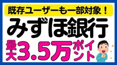 【みずほ銀行】一部は既存も対象!条件達成で最大35,000ポイント還元キャンペーン!<口座開設オススメです>