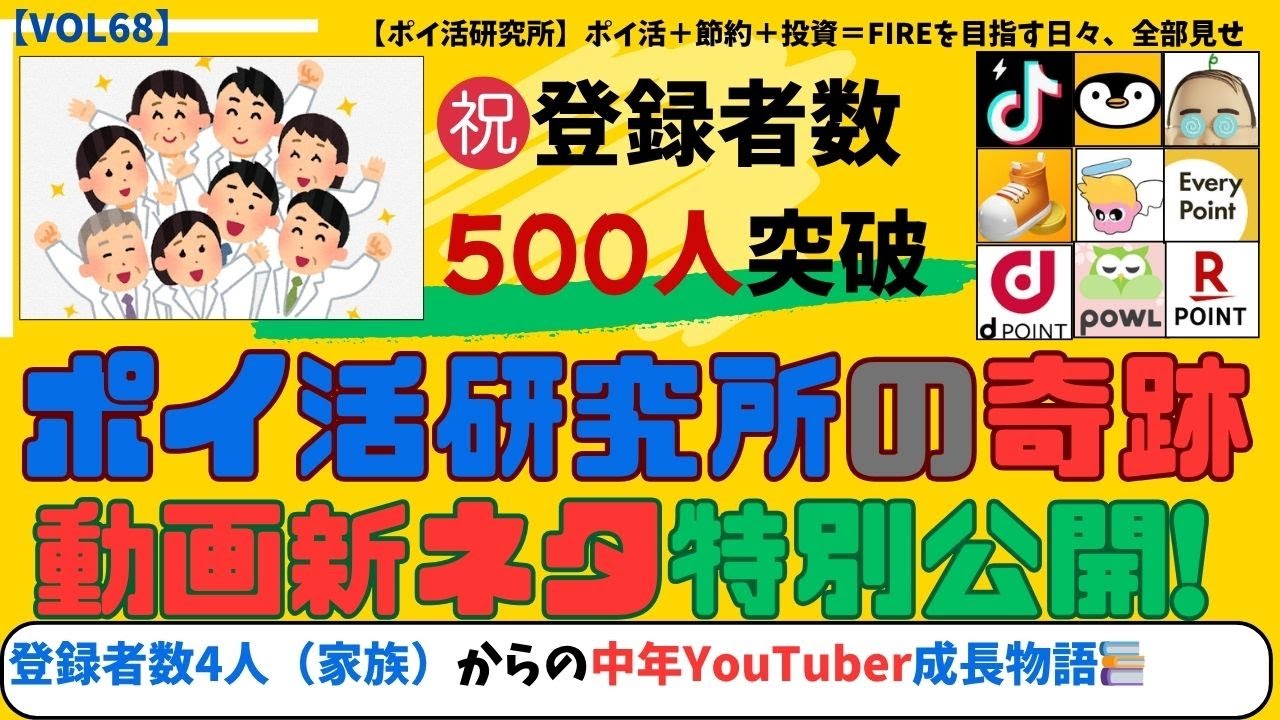 【ポイ活研究所の奇跡】登録者4人(家族)→500人突破🎉“買い物ゼロで稼ぐ”中年YouTuberの挑戦と感謝|アラフィフが語るポイ活のリアルと未来|トリマ・おぢポ・マネーウォーク・エブリポイントで稼ぐポイントサイト・お小遣いアプリ 2025.10.16 2025.10.14