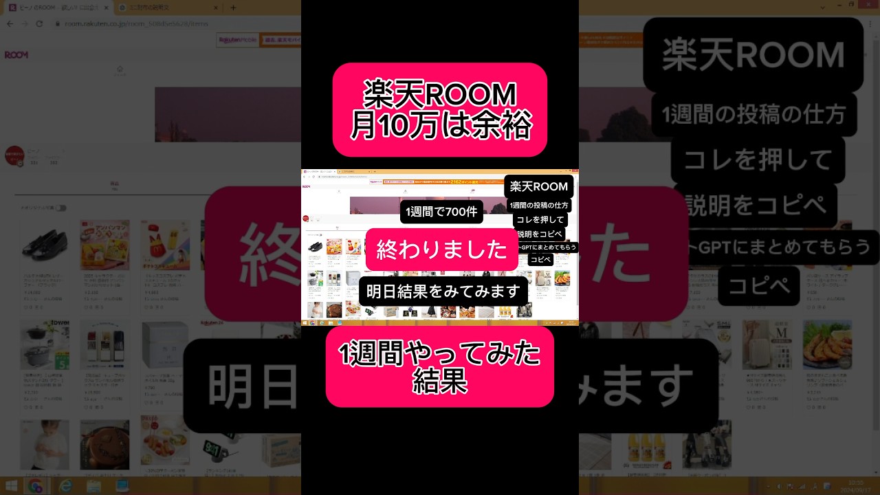 【副業shots 】1週間楽天ルームをやったらいくら稼げる?【ChatGPT】【チャットGPT副業】【楽天ROOM】#副業 #youtube #スマホポイントサイト・お小遣いアプリ 2025.11.06 2024.09.17