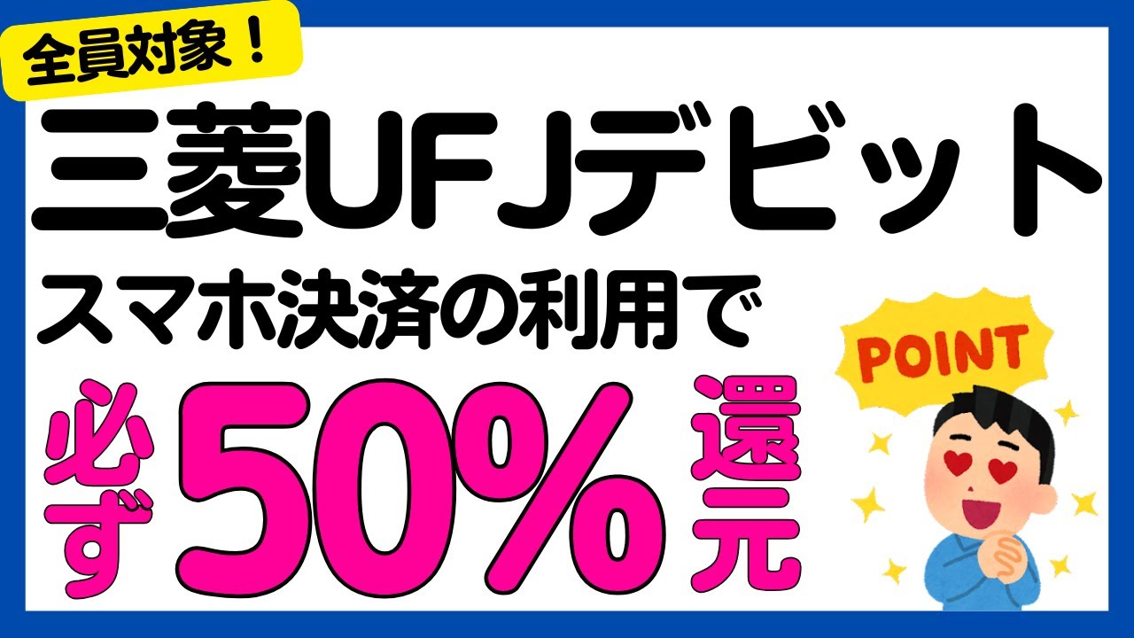 【三菱UFJデビット】全員対象!必ず50%キャッシュバック!