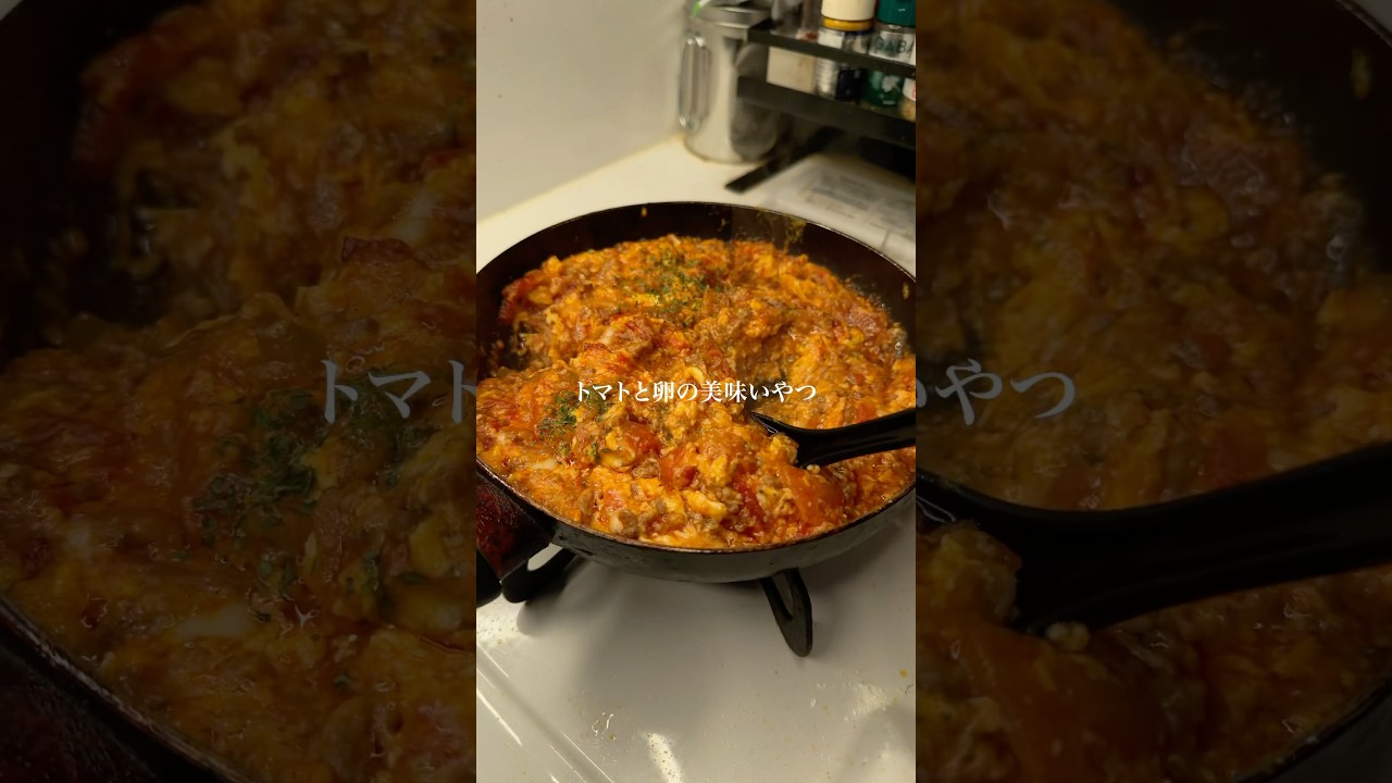 ワンパン『トマチ〜エッグ』作りました✨作り方はコメント欄へ➡️#簡単レシピ #カップル #ズボラ飯