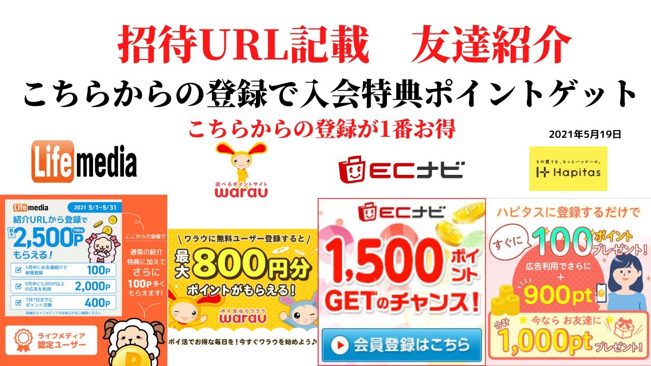 ECナビ ワラウ ライフメディア ハピタス 友達紹介 ポイ活 副業 life media warau hapitasポイントサイト アプリ 在宅ワーク 学生 主婦 2021年5月19日ライフメディア 2026.04.07 2021.05.19