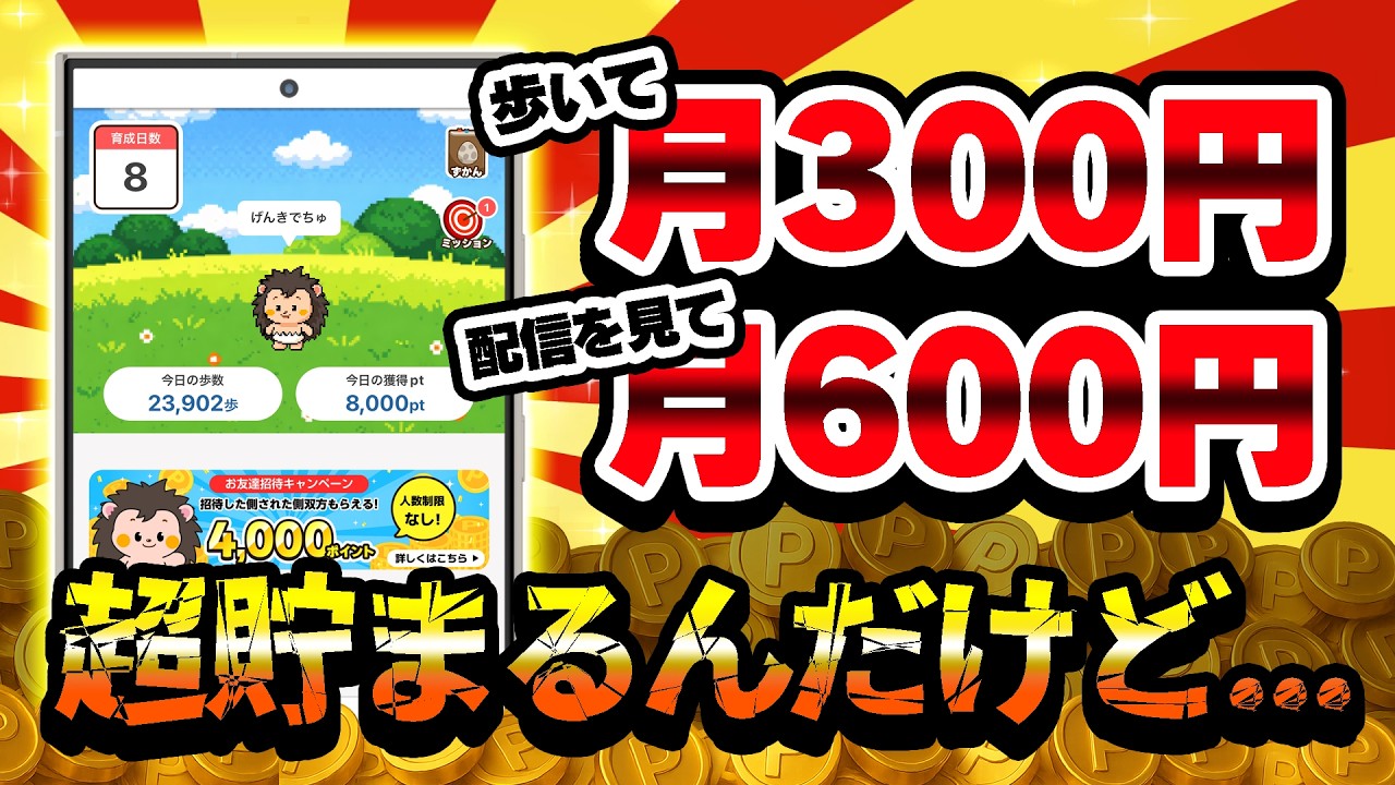 【NEW!!】激つよ!歩いて毎月300円&ライブ配信視聴で毎月600円貯まる!育成ポイ活アプリ「ぽいたま」新登場【ポイ活】