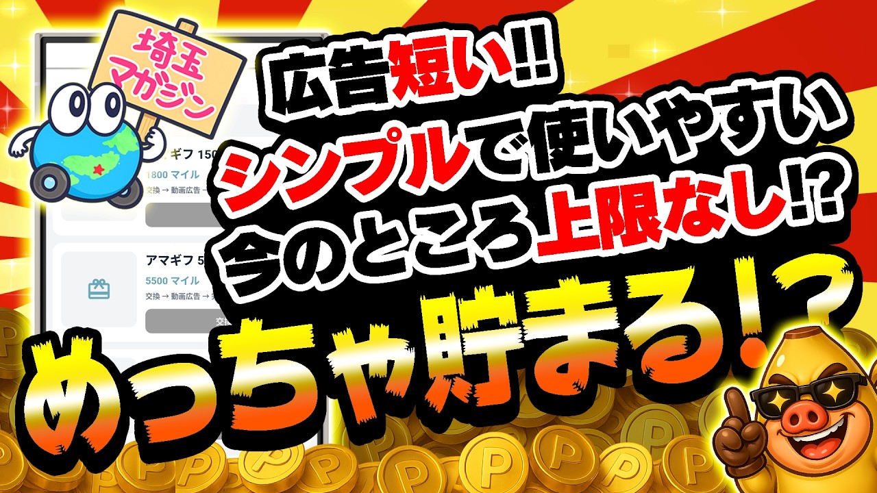 埼玉マガジンポイ活アプリの紹介ありがとうございます!広告視聴なのがネックですがそれ以上に最大10倍は凄いですね!